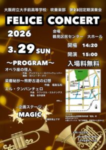 大手前高校吹奏楽部 第23回定期演奏会フェリーチェコンサートのご案内新着!!
