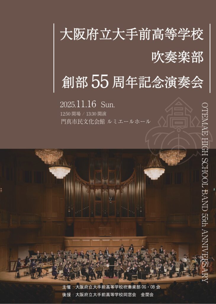 | プログラム | 【第1部】OG・OBステージ ・吹奏楽のための民話(Jim Andy Caudill) ・さくらのうた(福田 洋介) ・マゼランの未知なる大陸への挑戦(樽屋 雅徳) ・私のお気に入り(Richard Rodgers 編曲:宮川 彬良) 【第2部】現役生ステージ ・吹奏楽のための綺想曲「じゅげむ」(足立 正) ・宇宙戦艦ヤマト(宮川 泰 編曲:浦田 健次郎) ・シンプル・ギフト:4つのシェイカー教徒の歌(Frank Ticheli) ・アイドル(Ayase 編曲:郷間 幹男) 【第3部】現役生・OG・OBによる合同ステージ ・風紋(原典版)(保科 洋) ・大阪俗謡による幻想曲(自筆譜に基づく原典版)(大栗 裕) ・宝島(和泉 宏隆 編曲:真島 俊夫) 【アンコール】 ・『「千と千尋の神隠し」セレクション』より「ふたたび」「帰る日」(久石 譲 編曲:小野寺 真) ・ARSENAL(Jan Van der Roost) |